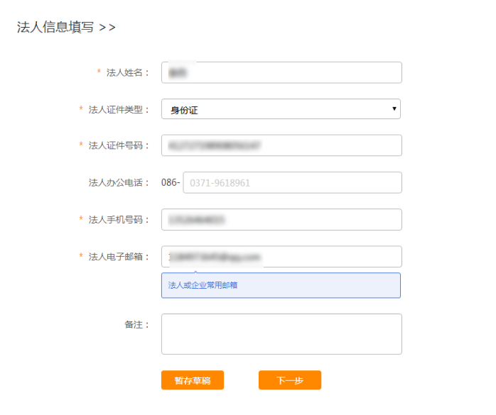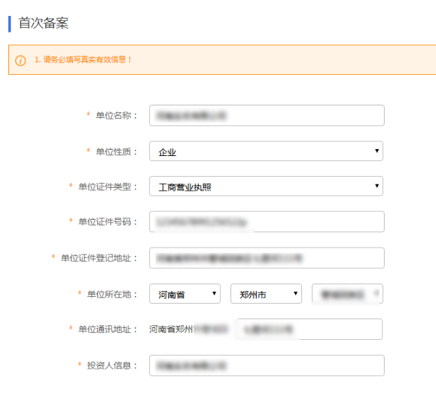 3.判斷出首次備案,按照要求和提示填寫主辦者和法人真實(shí)有效信息。