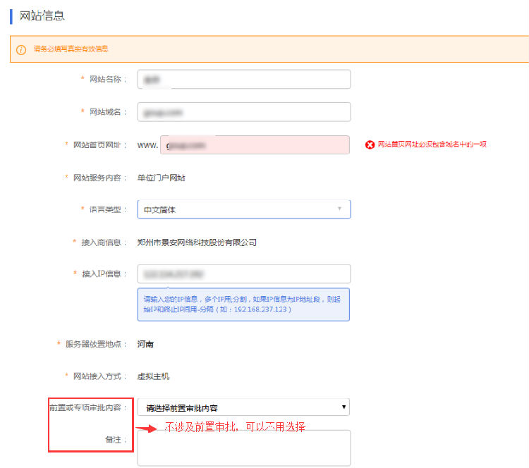 4.填寫真實(shí)有效的網(wǎng)站信息和網(wǎng)站負(fù)責(zé)人信息。