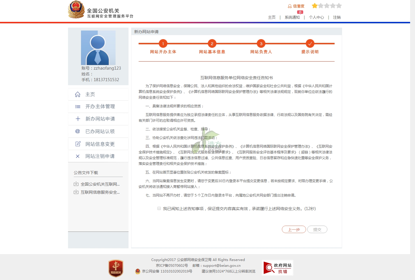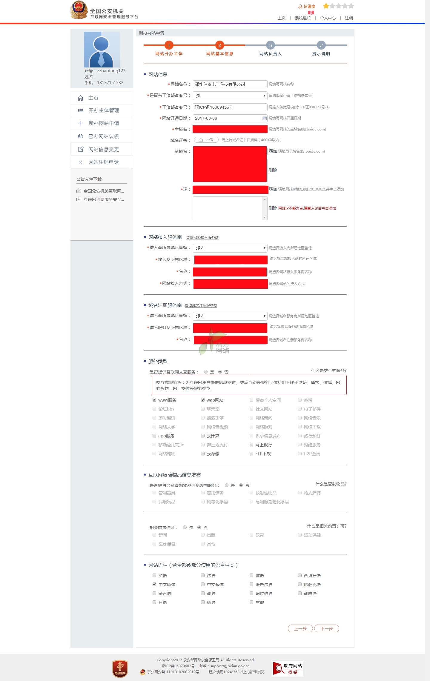3、網(wǎng)站負(fù)責(zé)人基本信息完善