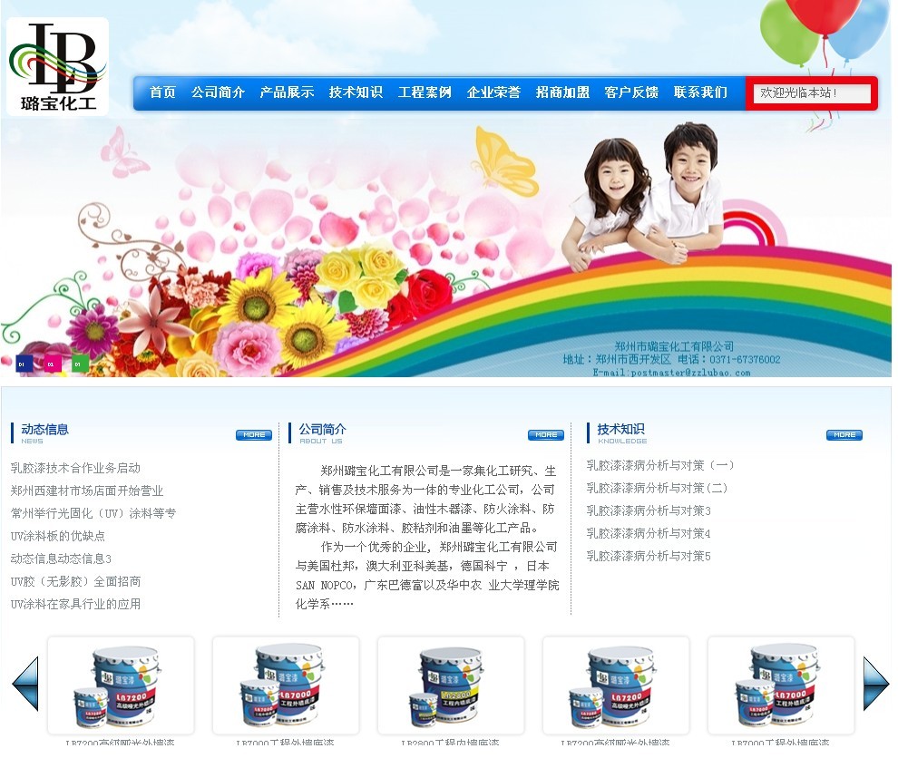 鄭州璐寶化工有限公司是一家集化工研究、生產(chǎn)、銷售及技術(shù)服務(wù)為一體的專業(yè)化工公司,公司主營(yíng)水性環(huán)保墻面漆、油性木器漆、防火涂料、防腐涂料、防水涂料、膠粘劑和油墨等化工產(chǎn)品。鄭州網(wǎng)站建設(shè)。