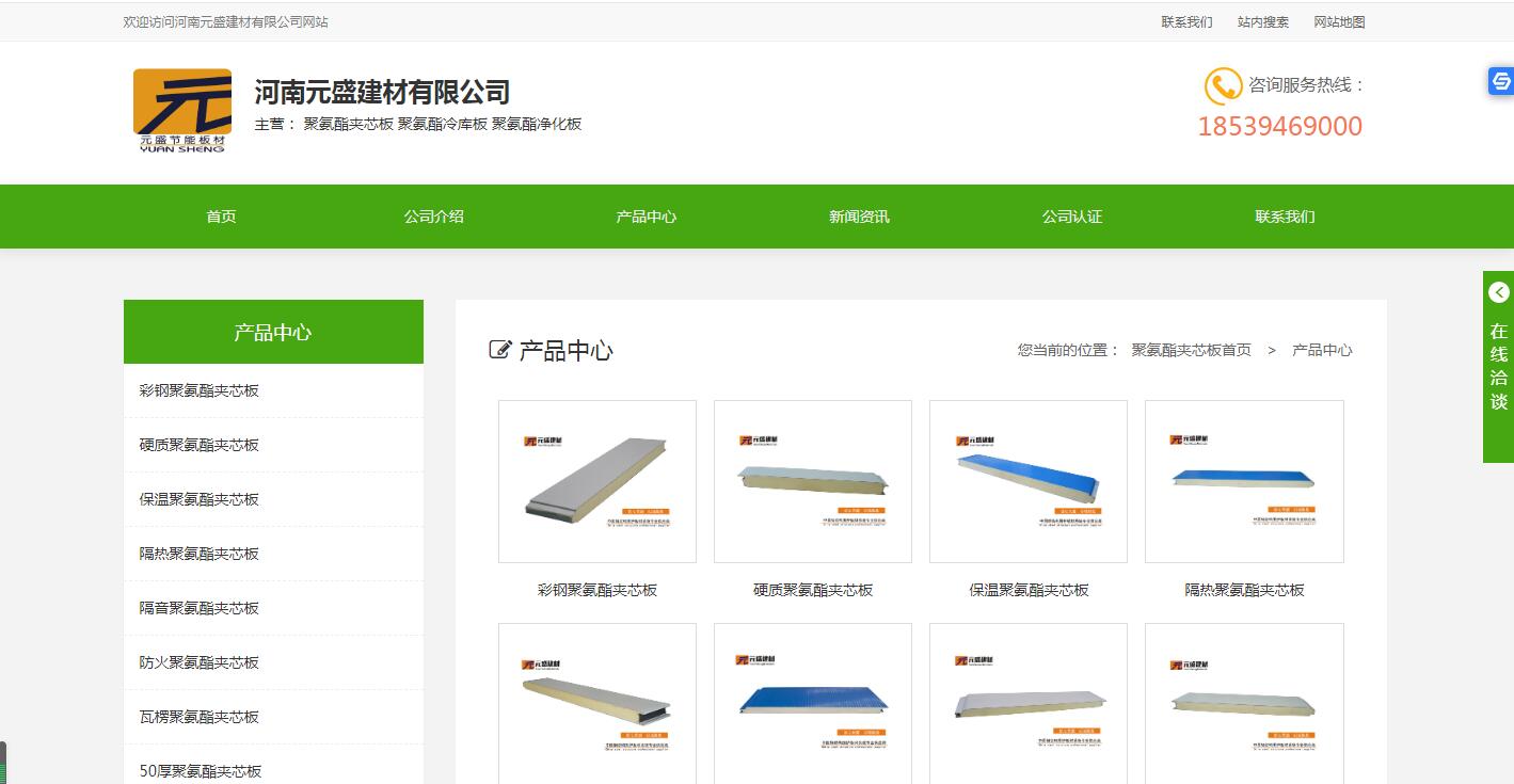 河南元盛建材zzjiuyang.cn蜂巢網(wǎng)站制作完成,該網(wǎng)站主要是聚氨酯板單品網(wǎng)站,河南元盛建材有限公司是我們偉置的老客戶,他家主要經(jīng)營聚氨酯夾芯板,聚氨酯冷庫板,聚氨酯凈化板。有需要的客戶可以直接和元盛曹經(jīng)理進(jìn)行聯(lián)系。