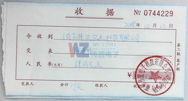 河南艾特農(nóng)農(nóng)業(yè)科技有限公司網(wǎng)站后期續(xù)費(fèi)信息展示,下圖為收據(jù)信息。